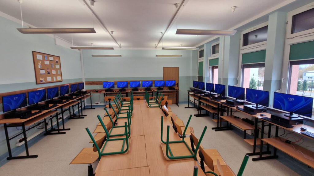 W ostatnich dniach mieliśmy przyjemność dostarczyć nowoczesną, 15-stanowiskową pracownię komputerową do szkoły w Zielonce. Wyposażyliśmy